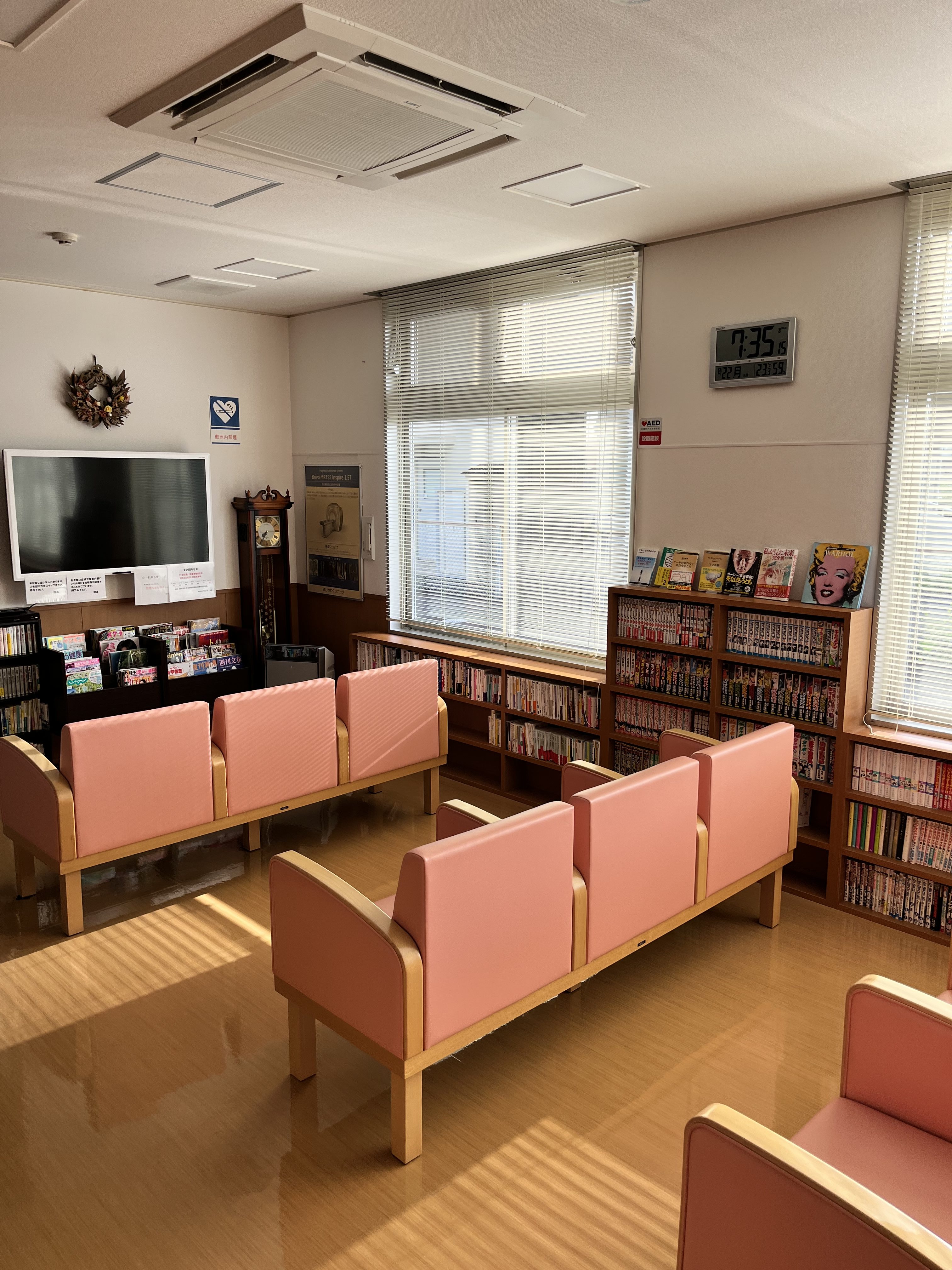 院内は清潔感を大切にし、待合室には院長の趣味で集めた本や花を配し、待ち時間もリラックスしてお過ごしいただけるよう配慮しております。